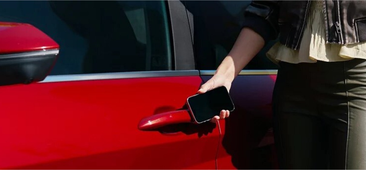 Your phone opens doors. And a whole lot more. With this available feature, you can add your car key to Apple Wallet®. Then hold your iPhone® or Apple Watch® near the door handle to unlock. Text a Digital Key to compatible phones and share with friends or family. This feature works with iPhone XR and later, Apple Watch 5 and later, and Galaxy S20 and later, with sharing between phones only when they have the same platforms.4